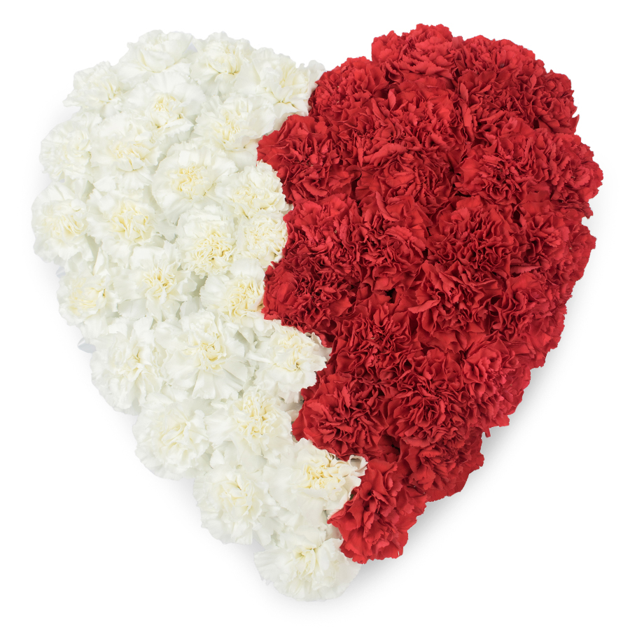 Immerse yourself in the charm of our heart-shaped carnation bouquet, a true masterpiece created by Handy Flowers. This arrangement features a harmonious blend of white and red carnations that speak of purity and passion. Each blossom is carefully hand-picked to ensure superior quality and lasting freshness, making this bouquet a luxurious symbol of affection and care.
